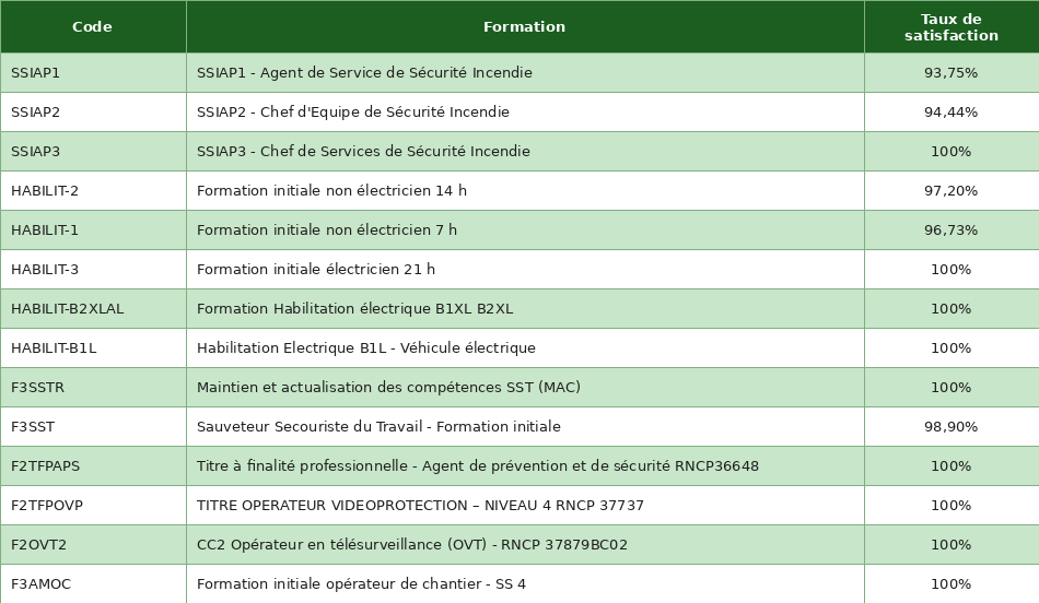 Résultat : Une évaluation positive quant aux notions mémorisées, aux gestes acquis et aux savoir-être en adéquation avec une posture de prévention et de sécurité